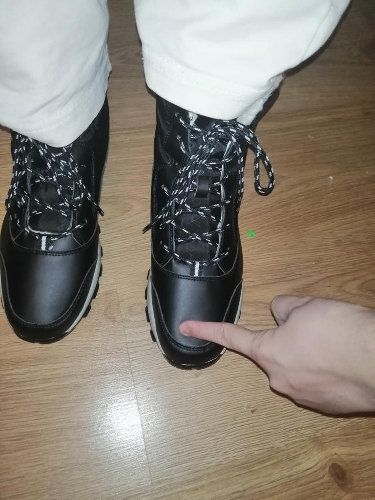 Au luat marimea 42 NU PENTRU MINE, eu am 39 (25 cm), in poza arat unde este degetul mare. Cizmele miros groaznic. Talpa din interior este goală, mersul nu este foarte confortabil. Nu merită banii.