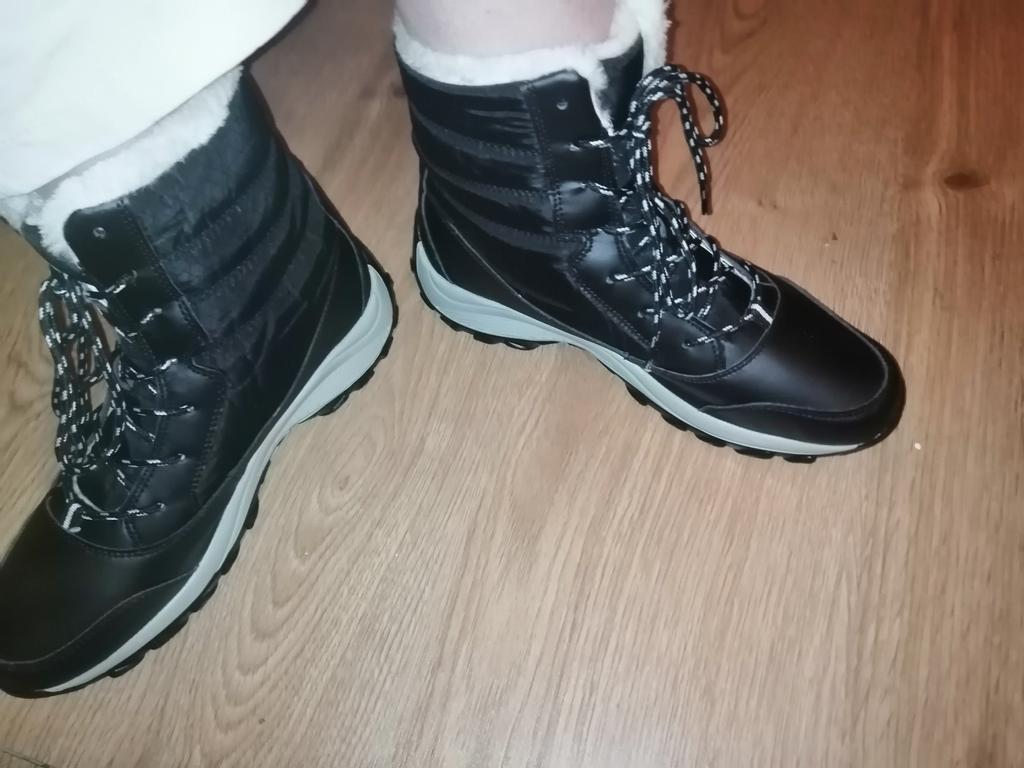 Arata minunat ca in poze! 🥰 DAR marea întrebare (dezamăgire de la prima vedere) este materialul tălpii. Pentru mine - mi se pare foarte alunecos.. 🥺 (ceea ce nici nu vreau să încerc, deoarece am o experiență prea dureroasă anul trecut 🤭) Așadar, aș dori să primesc orice răspuns de la alți cumpărători despre asta... 🧐 În rest - cizmele sunt foarte ușoare și cred - ar trebui să fie calde (-5°C a fost ok, este cea mai friguroasă zi din această toamnă/iarna până acum), se simte confortabil. Am luat 40 pentru 38/39 de picioare,- e ok cu șosete subțiri, dar aș dori chiar și o mărime mai mare.