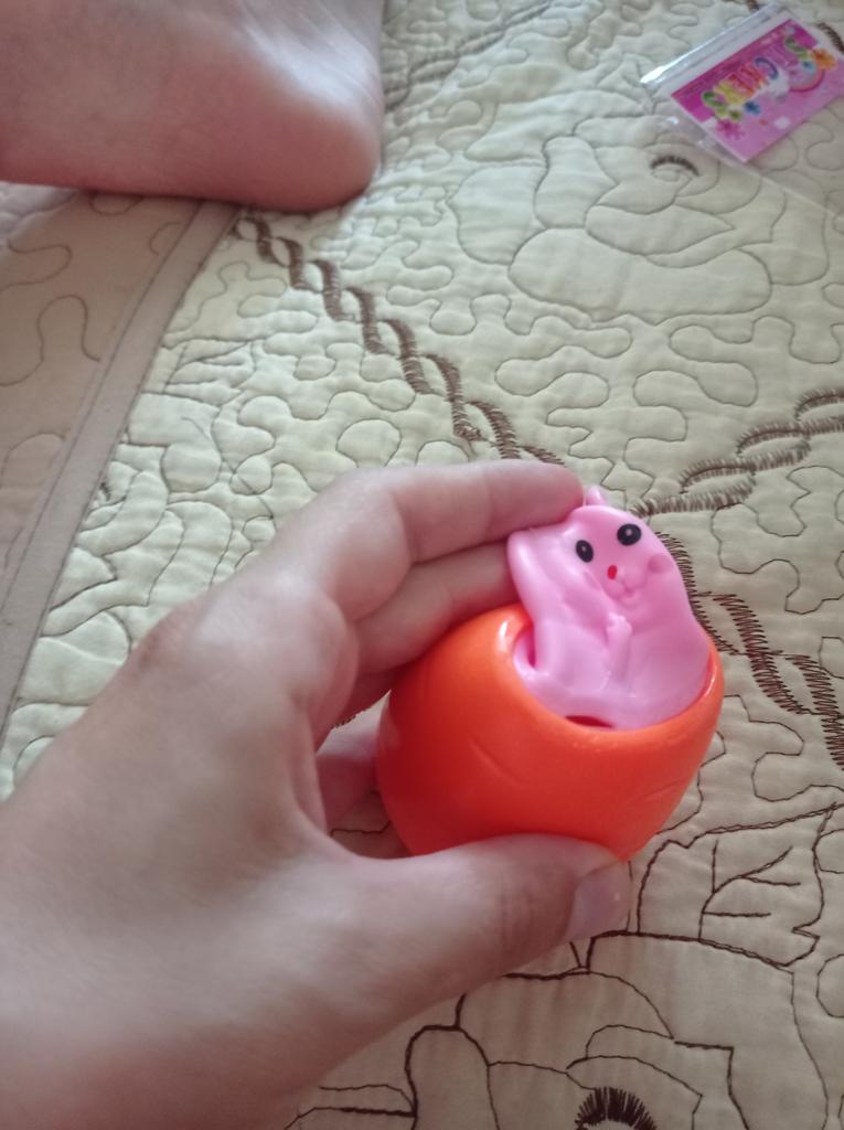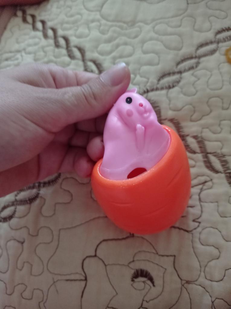 Credeam ca e micuț dar e destul de mare. Copiilor le-a plăcut mult, dar s-a dezlipit din primele mișcări iepurasul și ca să nu se apuce de plins le-am împărțit unui copil iepurele altuia morcovul :) dar eu am rămas dezamăgită de perioada scurta de viata a jucăriei. Acum sta aruncata ca multe alte jucării, așa că cum s-ar zice, de unica folosință.