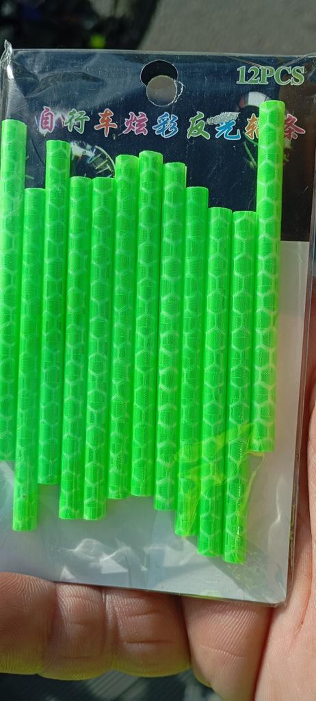 MATERIAL: Tubul spițelor este fabricat din plastic abs, iar filmul reflectorizant este atașat pentru a obține un efect reflectorizant. Materialul este ușor și puternic, care nu poate fi tăiat. Este ușor de curățat și poate fi spălat cu apă sau șters cu servetele umede, de asemenea, pot fi refolosite.