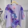 China Wind Print Îmbrăcăminte plisată Femei 2022 Primăvară Design Nou Templu Moda Ocean Calificare Tricou Îmbrăcăminte casual