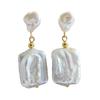 Cercei cu perle albe perle naturale de apă dulce Cercei cu aur și argint Cercei cu pandantiv pătrat baroc pentru femei boeme