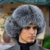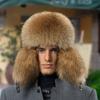 Pălărie de blană naturală din piele naturală 100% pentru femei, blană de vulpe argintie naturală, pălării pufoase Ushanka, iarnă, urechi groase, calde, șapcă bomber de modă