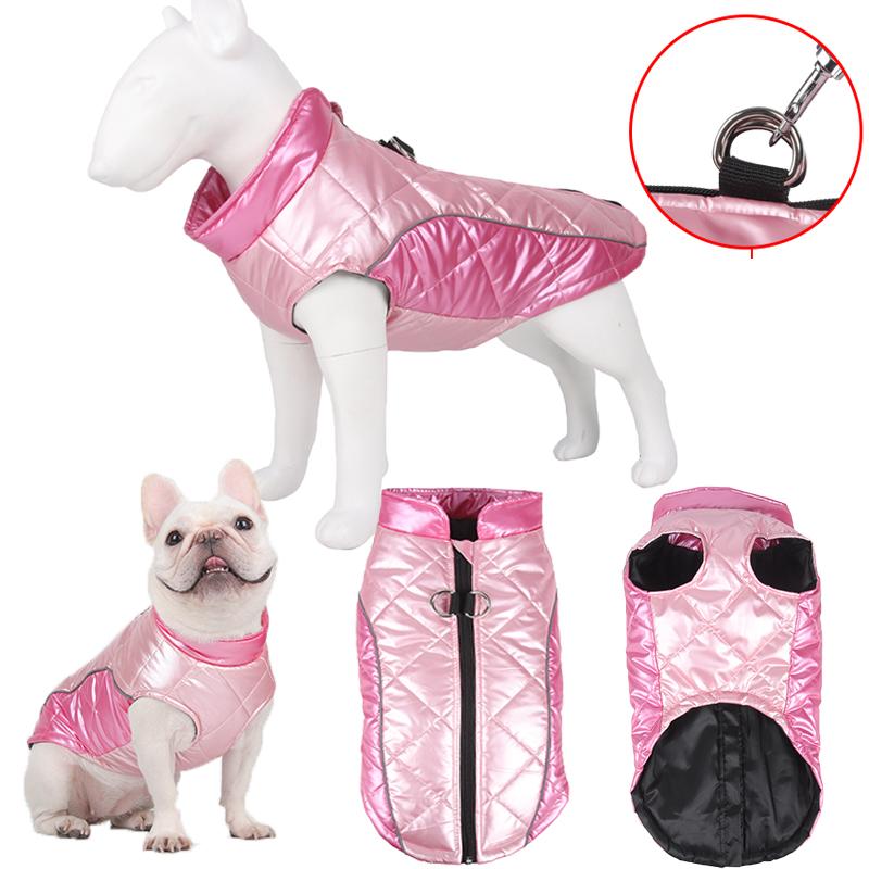 Jachetă pentru câini pentru animale de companie, cu ham, haine calde de iarnă pentru câini, ținute pentru buldog, chihuahua, haine impermeabile pentru câini.