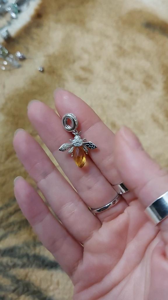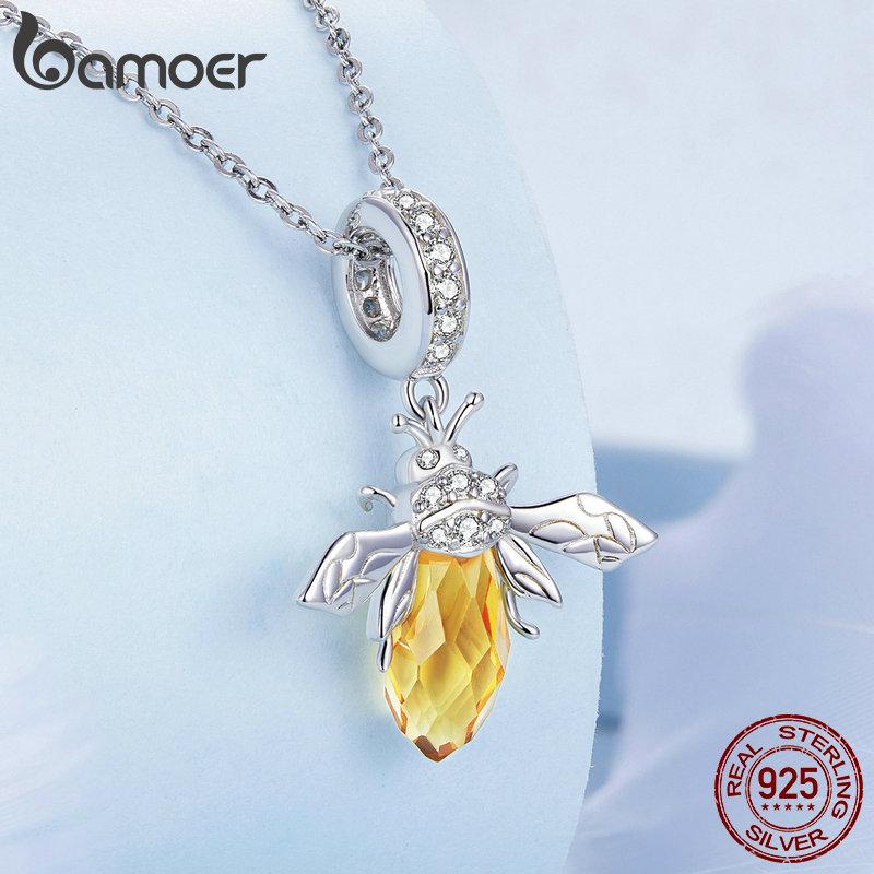BAMOER 925 argint sterling galben albină agățată mărgele drăguță insectă pandantiv pentru femei colier brățară