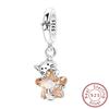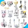 Noua sosire din argint 925, aur roz strălucitor, pisică pentru animale de companie, farmec potrivit pentru brățară și colier, bijuterii pentru femei, cadou de zi de naștere.