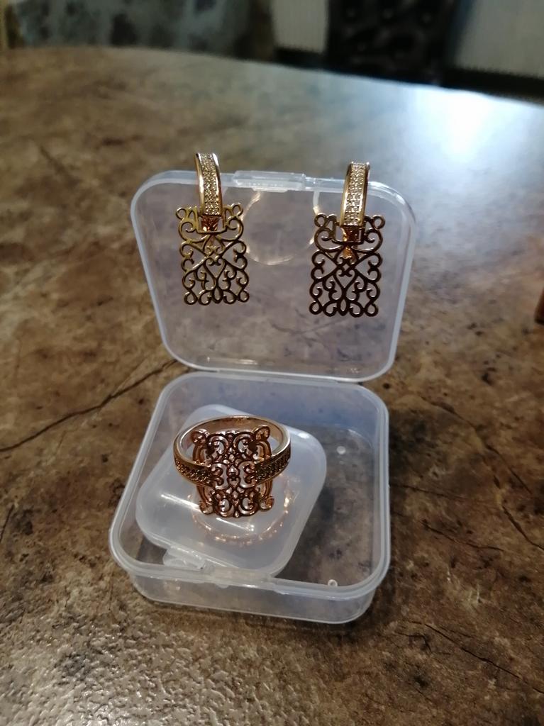 Am adunat un set: un lant cu pandantiv, cercei si inel, bijuterii foarte frumoase. Dacă nu s-au întunecat repede, recomand vânzătorul.