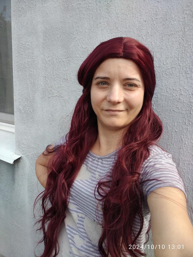 MISSQUEEN Perucă lungă ondulată la modă pentru femei, fără breton, fibră sintetică, lungă, cu val natural, perucă de vin roșu Purtare zilnică