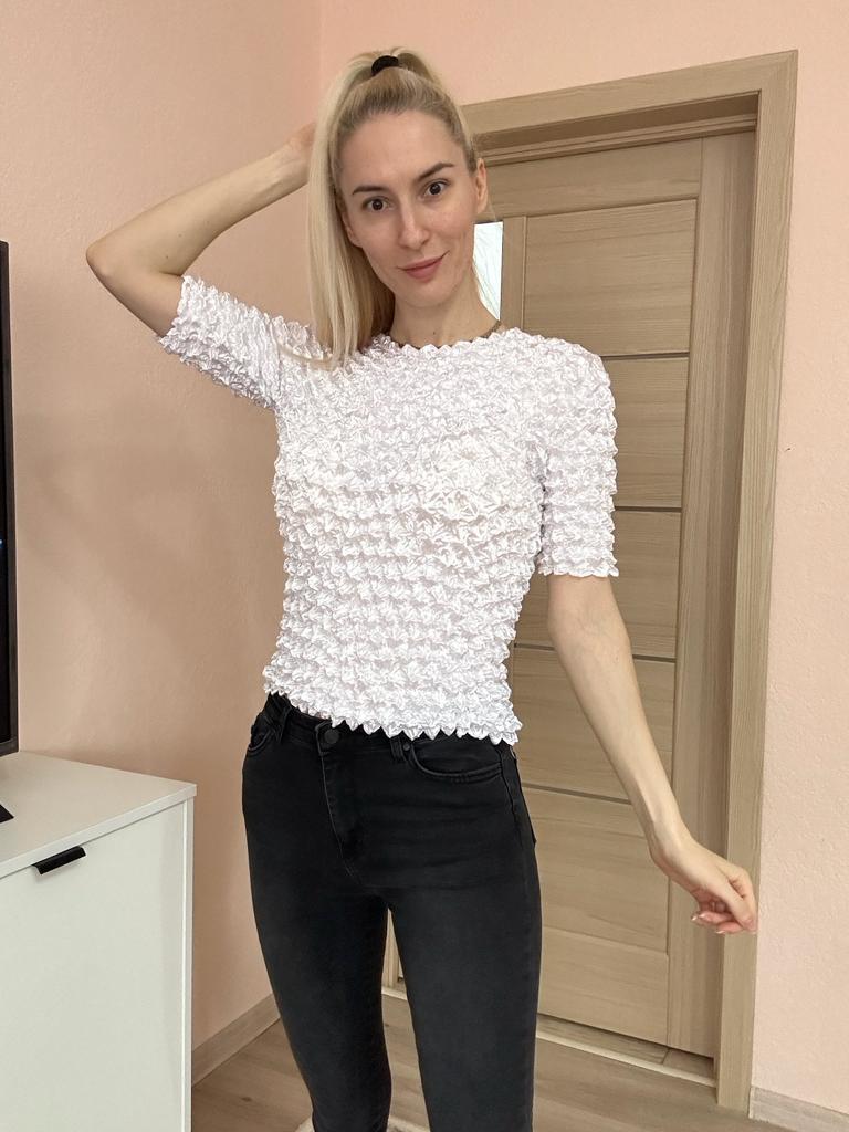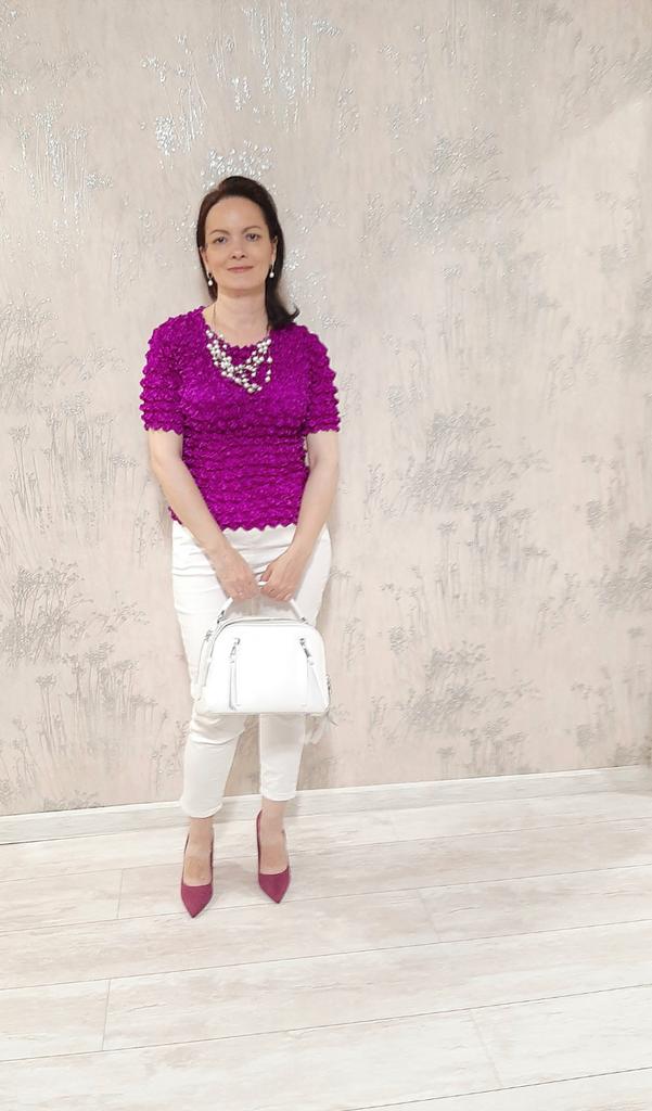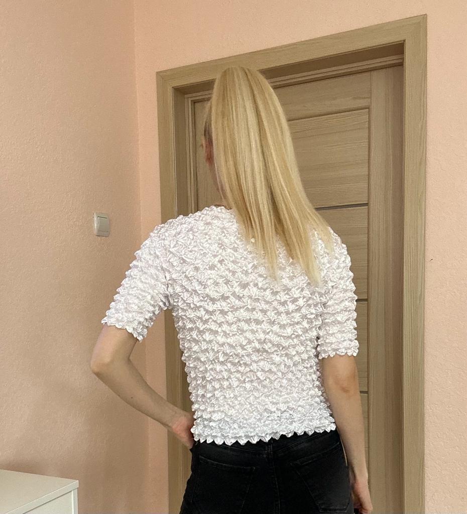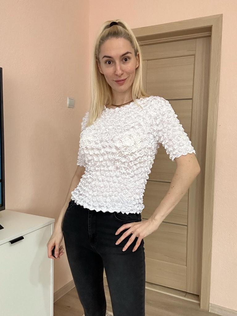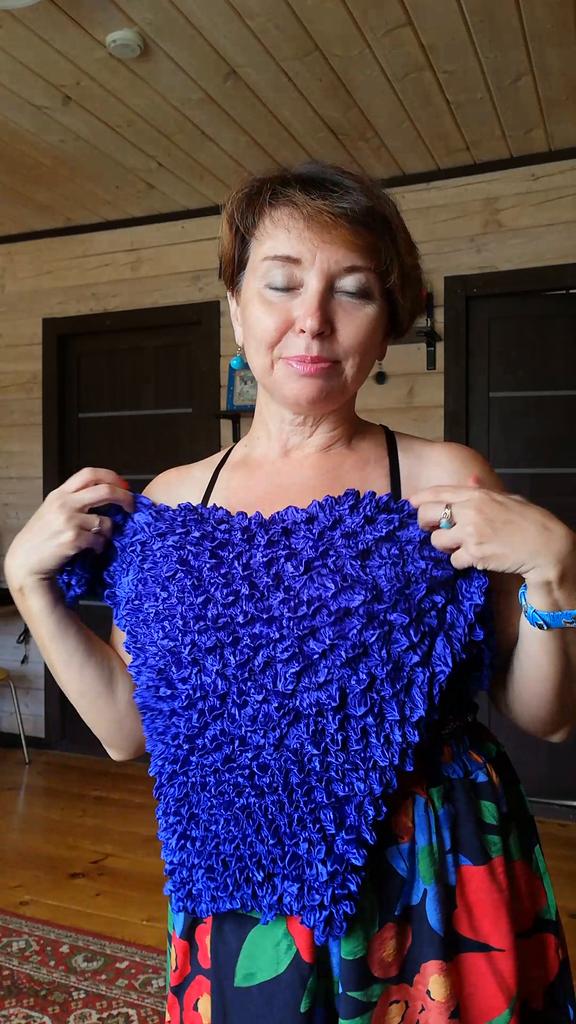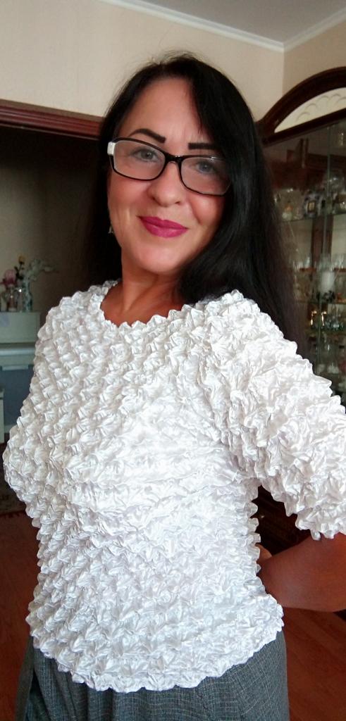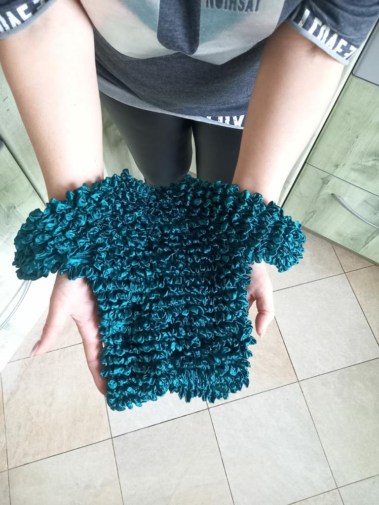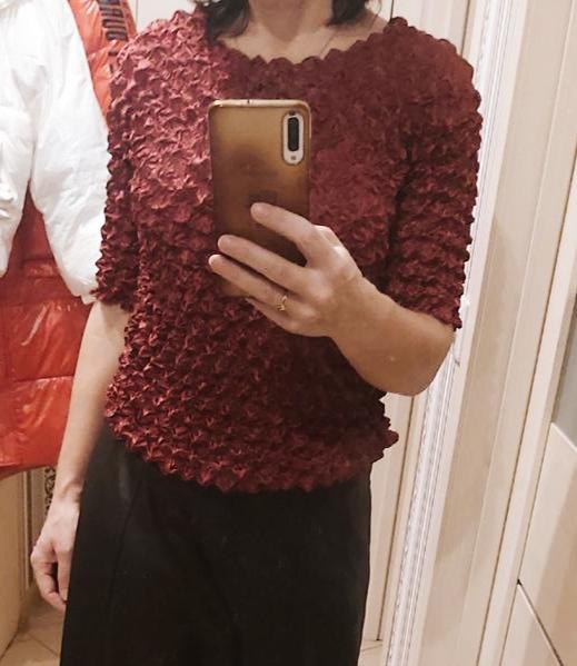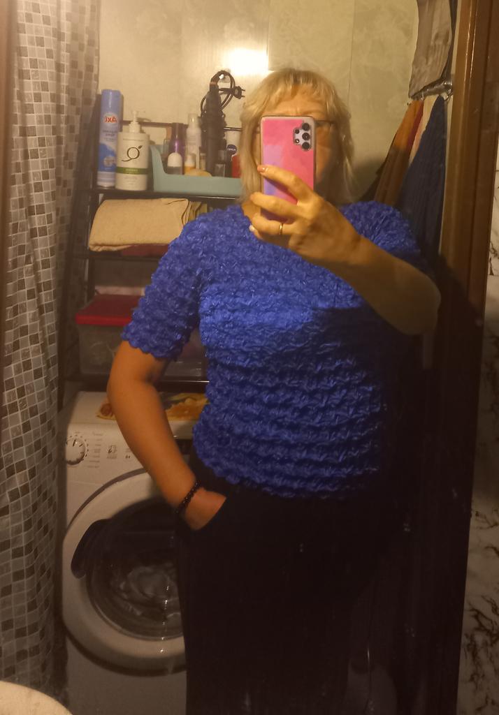 Bluza draguta din copilarie. Când eram încă adolescent, era o modă pentru astfel de bluze. Acum se întorc în garderoba multor frumuseți. Bluza este simpla, usoara si subtire. Mărimea este universală. Datorita croiului, se potriveste usor atat pe marimea C cat si pe L. Tesatura nu se intinde, dar datorita benzilor elastice cu care este cusuta se potriveste cu usurinta siluetei. Arată foarte atractiv. Țesătura este sintetică, dar plăcută pielii. Printre minusuri, pot doar să adaug că materialul este parka, deci este cel mai potrivit nu pe căldură, ci pe vreme rece. Vă recomand