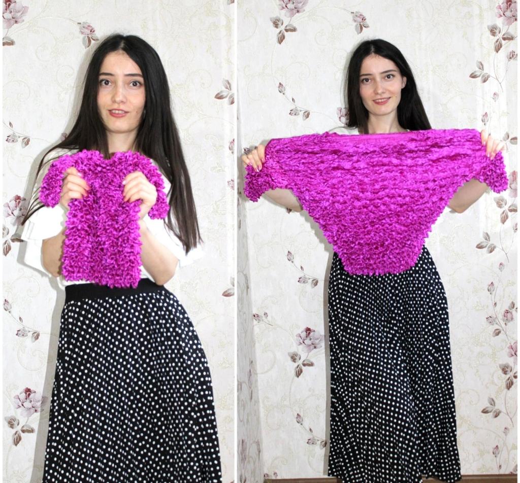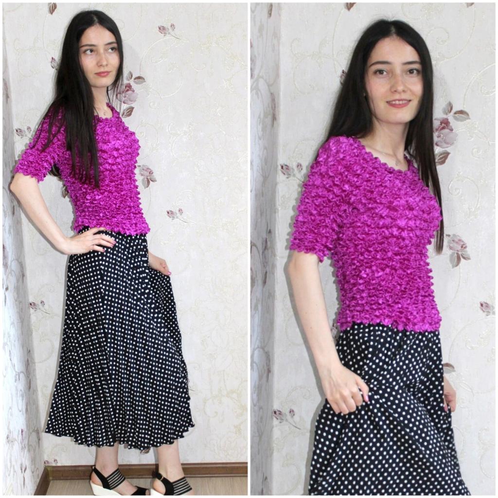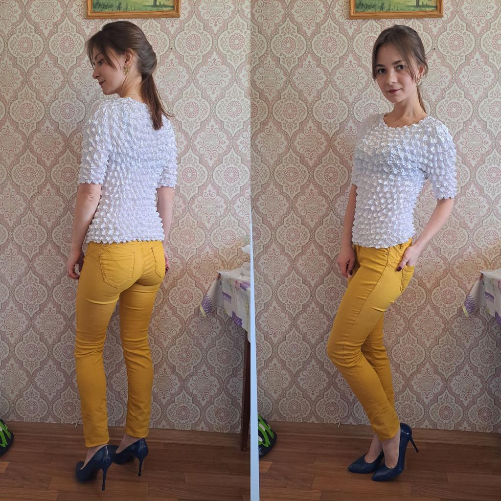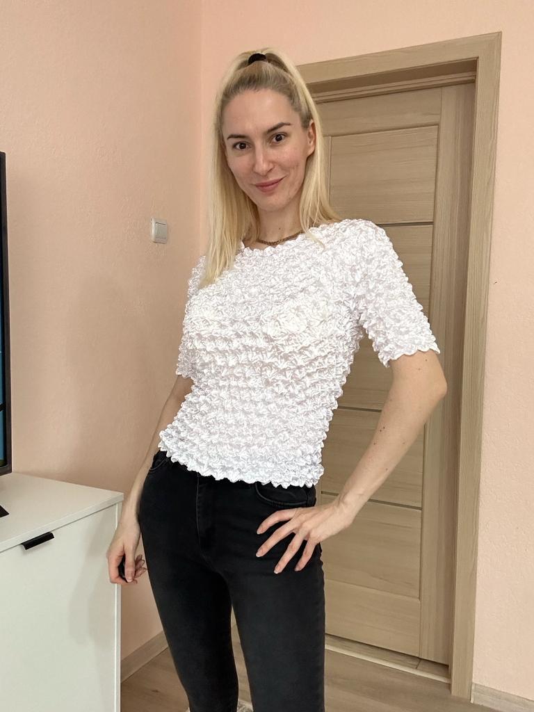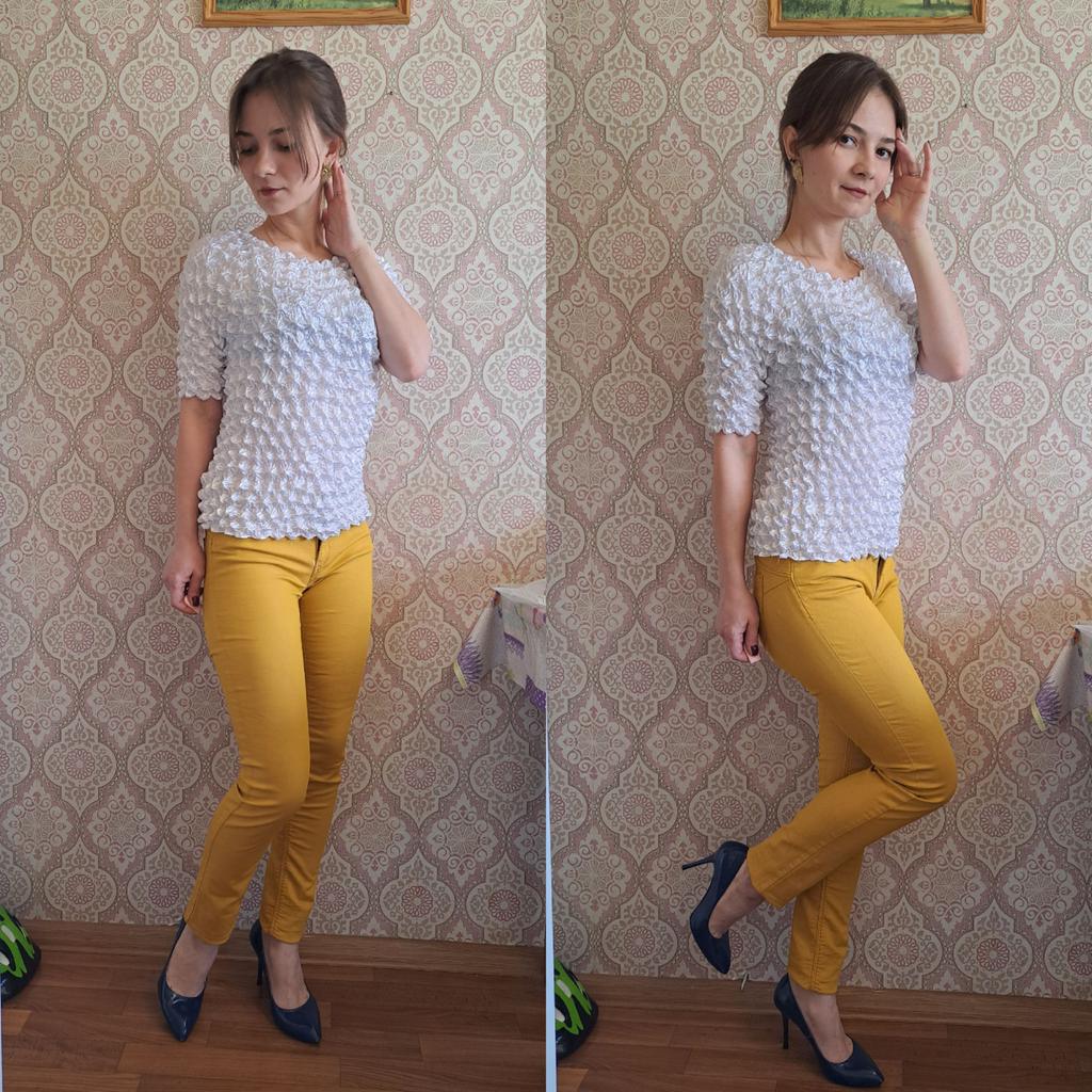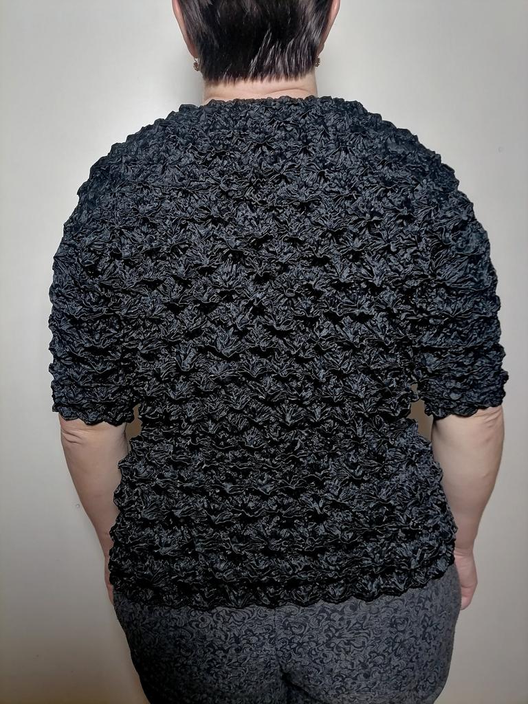 Bluza draguta din copilarie. Când eram încă adolescent, era o modă pentru astfel de bluze. Acum se întorc în garderoba multor frumuseți. Bluza este simpla, usoara si subtire. Mărimea este universală. Datorita croiului, se potriveste usor atat pe marimea C cat si pe L. Tesatura nu se intinde, dar datorita benzilor elastice cu care este cusuta se potriveste cu usurinta siluetei. Arată foarte atractiv. Țesătura este sintetică, dar plăcută pielii. Printre minusuri, pot doar să adaug că materialul este parka, deci este cel mai potrivit nu pe căldură, ci pe vreme rece. Vă recomand