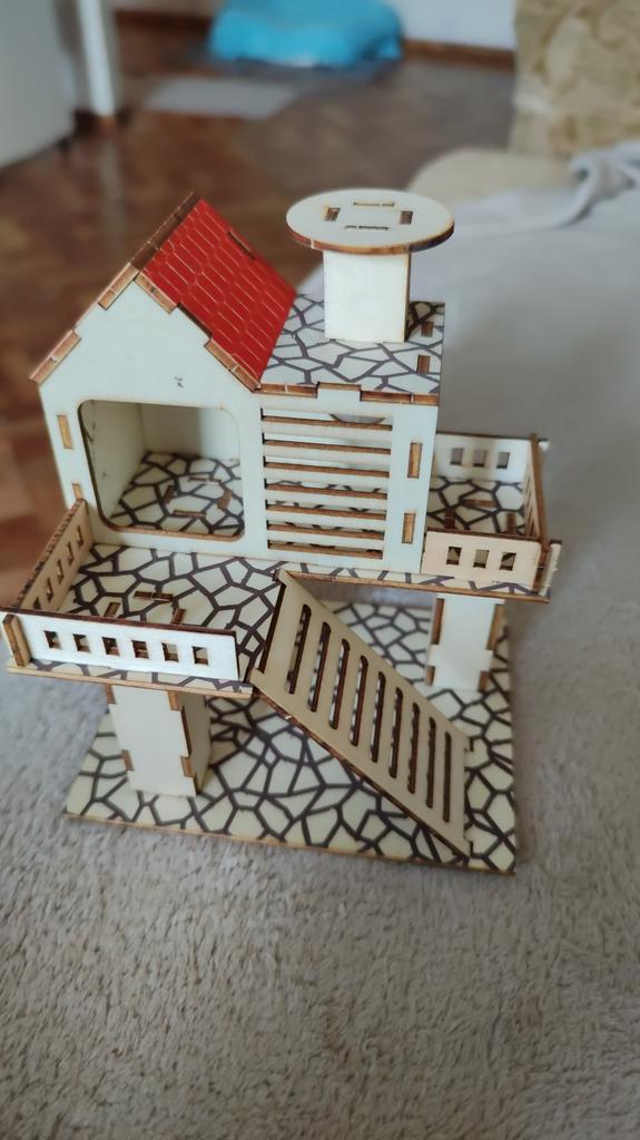 Construcția a fost ceva mai dificilă (ca sfat, mai degrabă spargeți piesele doar când este cerut în instrucțiunile de asamblare) nu s-a stricat nimic, arată și frumos, dar este foarte mic. Poate un mini hamster pitic pentru hamsteri aurii și șoareci cred că este prea mic. Pentru comparație, o bucată de 5 cenți în imagini.
