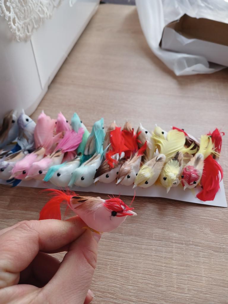 Lot de 24 de pasari foarte dragute dar sunt foarte mici 4 si 5 cm pentru plante mici pasarile are culori diferite cele mai multe sunt fragile aveti grija va sfatuiesc recomand acest vanzator Multumesc joom cordial mila