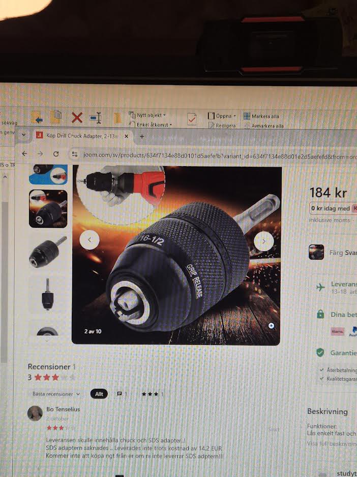 Livrarea ar trebui să includă mandrină și adaptor SDS..! Adaptorul SDS lipsea .. Nu a fost livrat în ciuda costului de 14,2 EUR Nu voi cumpăra nimic de la voi dacă nu livrați adaptorul SDS!!!