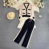 Toamnă Iarnă Femei Tricotat Pulover Pantaloni Set Ocazional Decolteu în V Jachetă tricotată cu un singur piept Pantaloni cu șnur Trening sport 2 piese