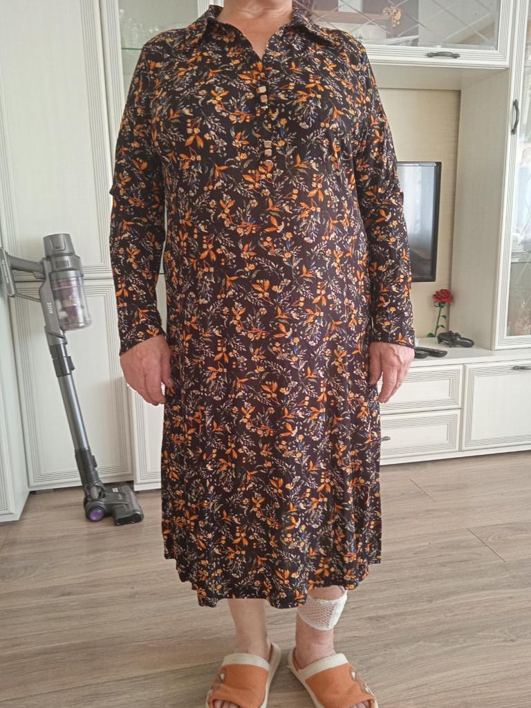 Exact pentru o dimensiune a bustului de 100 cm, țesătură frumoasă, dar aș dori o mânecă mai lentă, puteți comanda în siguranță o mărime mai mare.