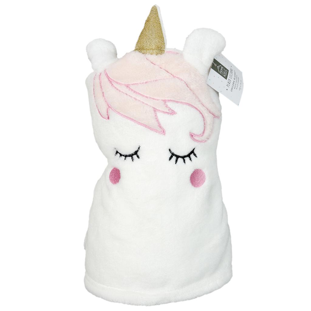 Les Trésors De Lily [A1822] - Plaid pluș 'Licorne My Unicorn' alb roz - 100x75 cm