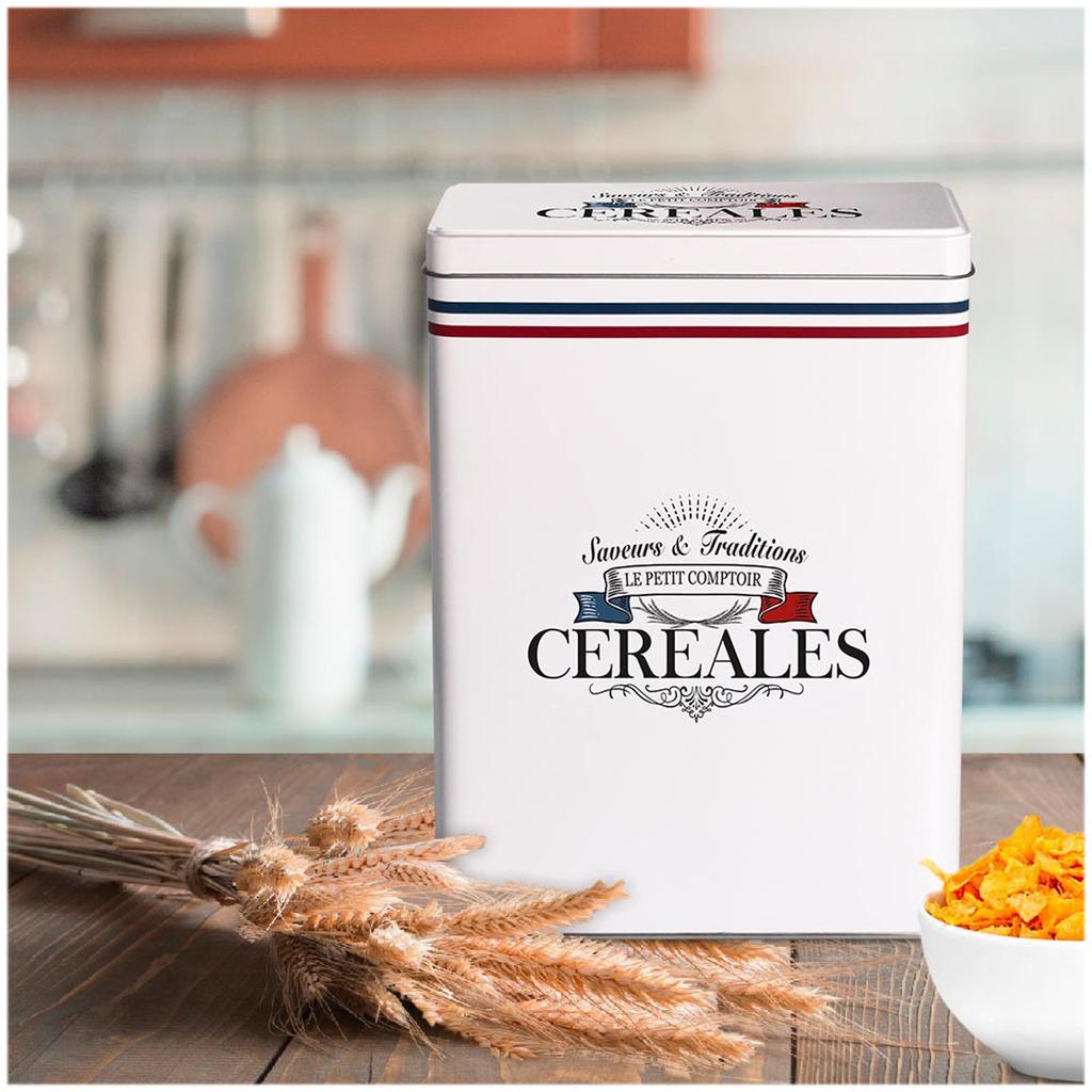 Les Trésors De Lily [A3022] - Cutie de cereale din metal alb „Le Petit Comptoir” (arome și tradiții) - 25x18x10cm