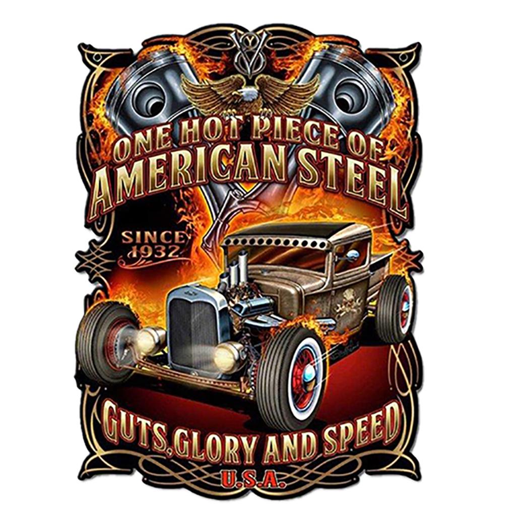 Les Trésors De Lily [A3228] - Placă metalică retro „American Steel” roșu negru - 50x35 cm