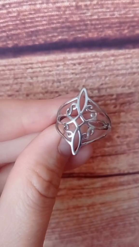 Inel din oțel inoxidabil Witch Knot cu cruce Wiccan și nod celtic, pentru femei, amuletă de protecție și noroc, cadou de Anul Nou 2023