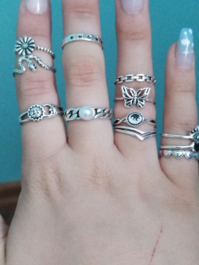 Inel stea Yin Yang Retro Inel Soare Luna Inel simplu Ochi de șarpe Fluture Inimă Set de inele cu lanț Inel mecanic