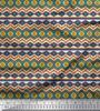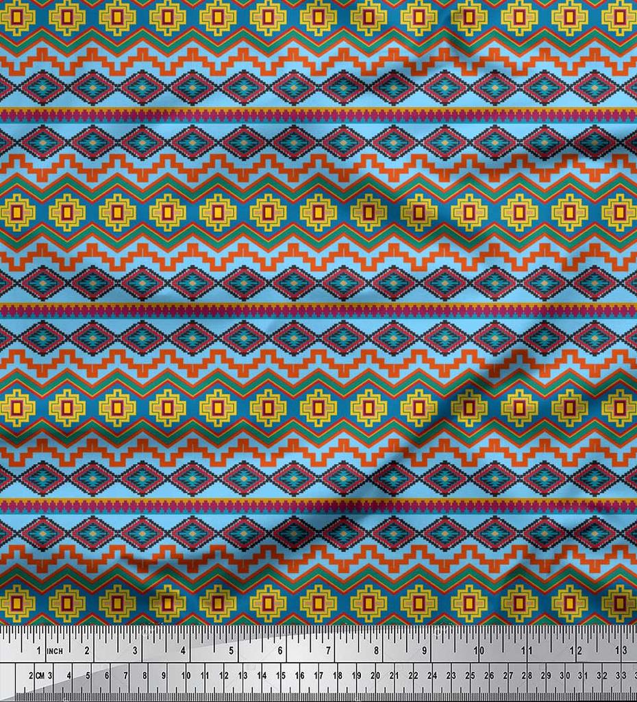 Soimoi Material Satin Crep Albastru Japonia Material cu Imprimeu Geometric Aztec la metru 42 Inch