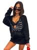 Jachetă cu glugă cu imprimeu Harajuku de epocă, haine de strasuri, cu schelet cu strasuri, hanorace gotice, cu fermoar, pentru femei