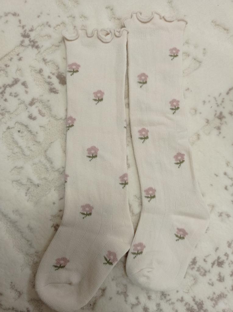 1 pereche de șosete înalte până la genunchi pentru fetiță, drăguț, stil vintage, cu flori pentru copii mici, peste vițel, șosete de primăvară, toamnă, din bumbac pieptănat, nou-născut