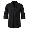 Bluză ocazională pentru bărbați, cămașă din bumbac și in, Topuri, tricou cu mânecă lungă, primăvară, toamnă, cu plachetă înclinată, cămăși de yoga vintage
