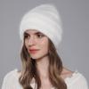 Pălărie de iarnă pentru femei, tricotată cu păr de iepure, caldă, versatilă, din lână, cu fir argintiu.