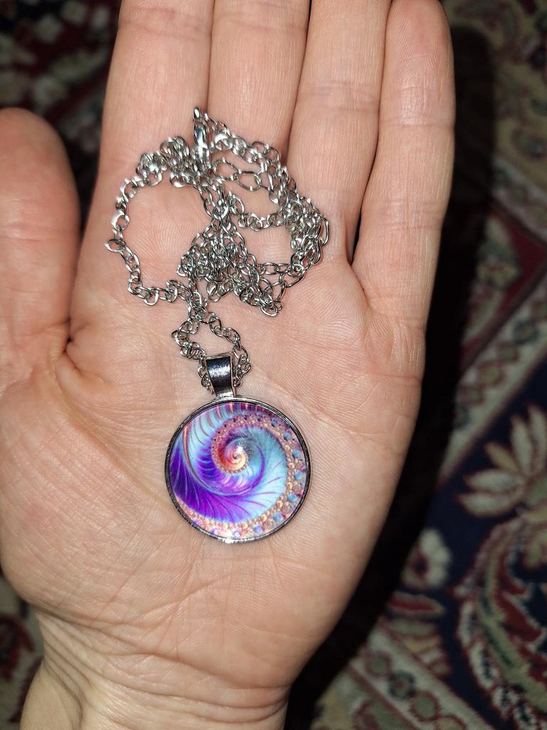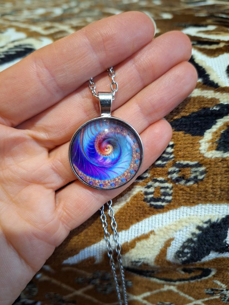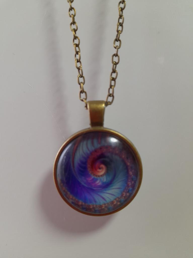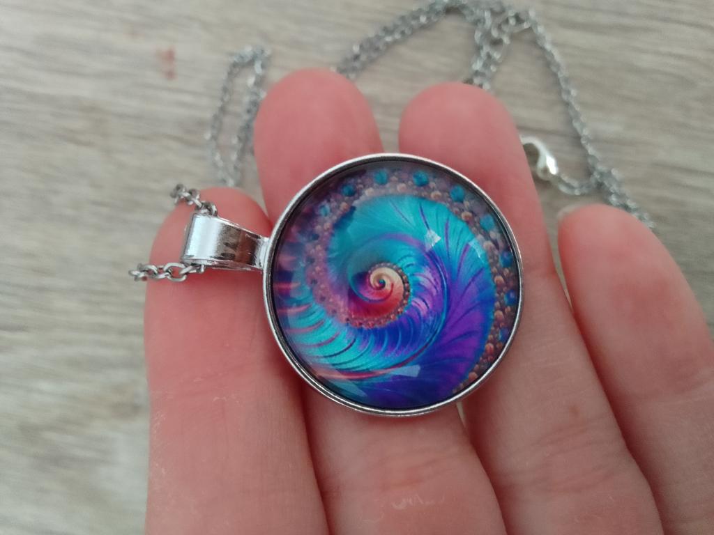 Colier cu geometrie sacră fractal în spirală Fibonacci, bijuterii cu geometrie sacră fractal în spirală Fibonacci, pandantiv fractal în spirală Fibonacci