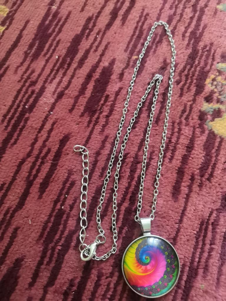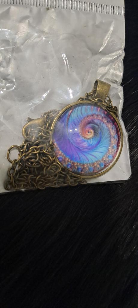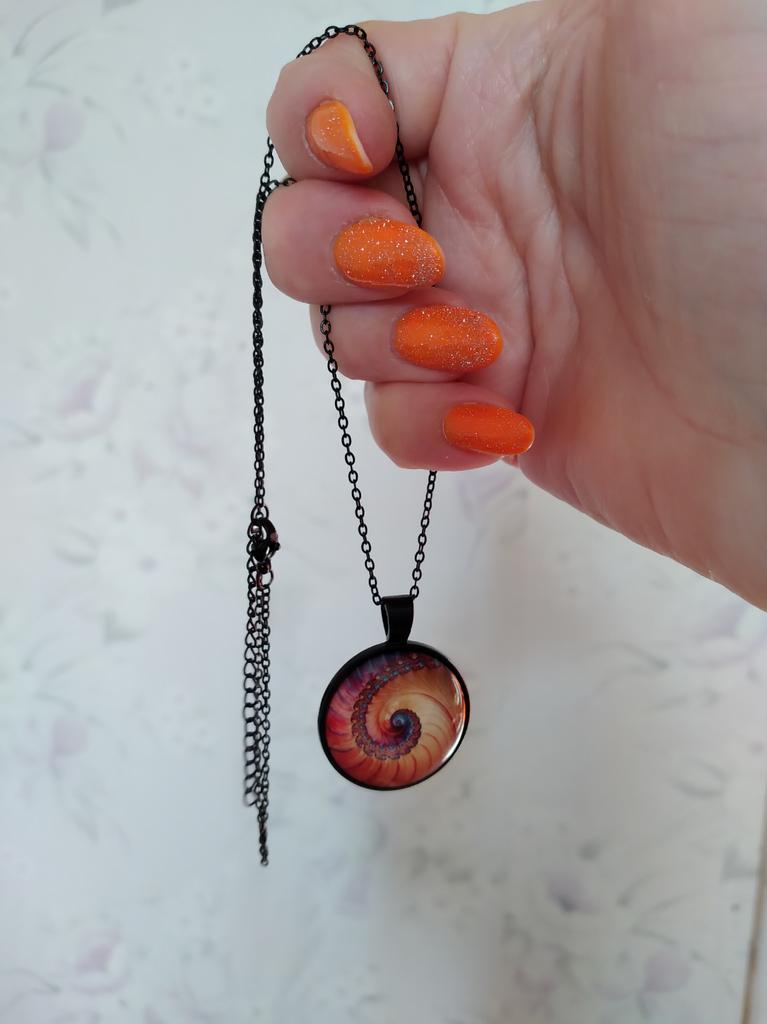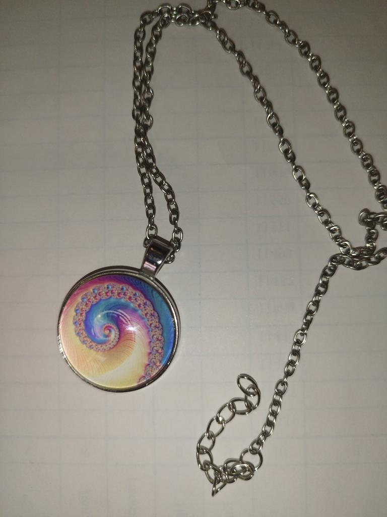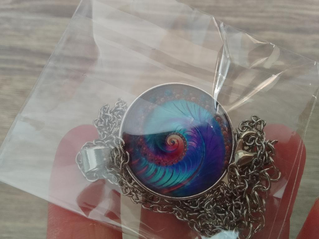 Colier cu geometrie sacră fractal în spirală Fibonacci, bijuterii cu geometrie sacră fractal în spirală Fibonacci, pandantiv fractal în spirală Fibonacci