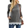 Îmbrăcăminte pentru femei europene și americane cu gât rotund, lejer, pulover, buzunar, tricou cu cusături din dantelă