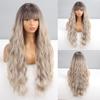 MISSQUEEN Perucă pentru femei Ombre Maro Gri Culoare Perucă ondulată lungă cu breton Fibră sintetică Femei Purtări zilnice Perucă ondulată Cosplay