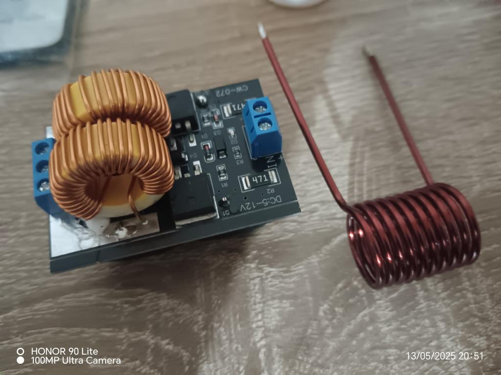 Curentul este relativ mare în timpul încălzirii prin inducție, căldura bobinei este, de asemenea, relativ mare, de obicei funcționează timp de 5 minute pentru a opri până la răcire și vă rugăm să lipiți bobina de încălzire direct pe placa de circuit imprimat în timpul încălzirii prin inducție.