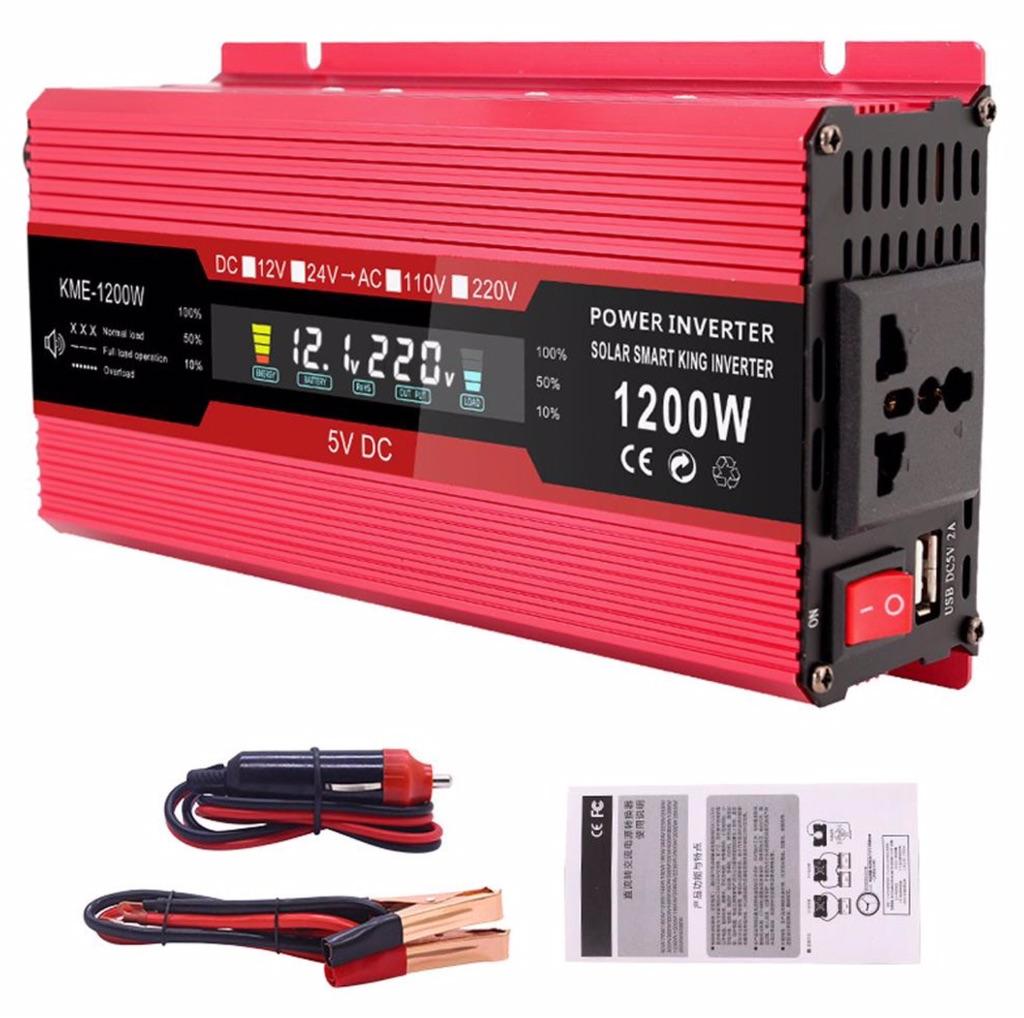 Invertor digital multifuncțional, convertește curentul continuu de 12 V la 220V sau 110V AC, conversie eficientă, potrivit pentru mașină, casă, birou, activități în aer liber etc.