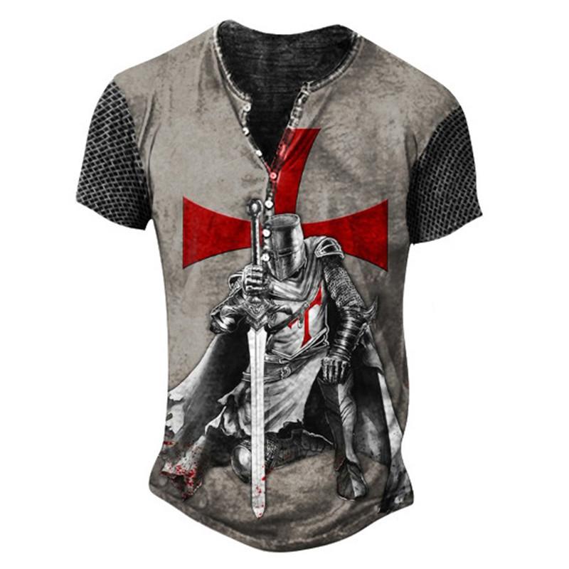 2023 Tricou la modă cu mânecă scurtă de vară în stil vintage, tricou cu guler în V cu nasturi pentru bărbați.