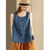 Xitao Bluză fără mâneci pentru femei, subțire, cu guler de in, WLD2034
