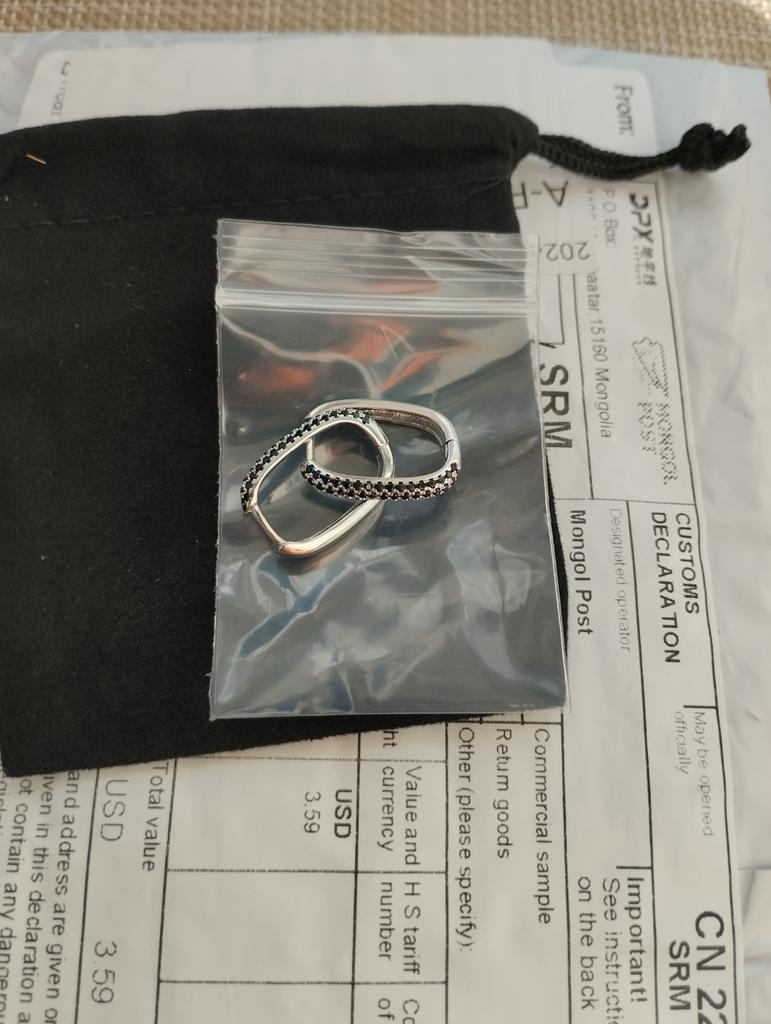 Mini-cercuri frumoase în formă dreptunghiulară de la Black Awn. Vine într-o pungă de velur, foarte ușoare, mini-cristale de cupru și negre sunt zirconiu cubic. Bijuteriile din acest magazin de obicei nu se întunecă și durează foarte mult timp. Livrarea a durat 3 săptămâni. Cumpărături fericite!