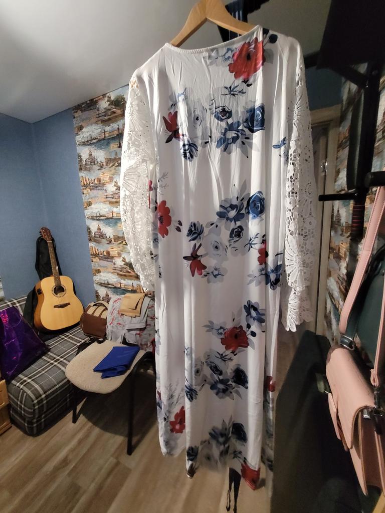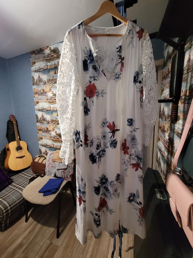 A spune că aceasta este o rochie înseamnă a nu spune nimic. Nici măcar nu arată ca o cămașă de noapte. Chiar sub genunchi și strâns 5XL. Calitate groaznică.