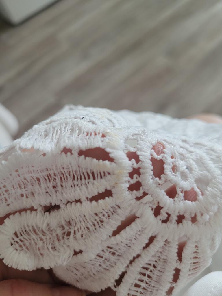 Rochia de sub axile este teribil de lată, a trebuit să o îngust, voi spune că rochia din fotografia expoziției arată ca bumbac și frumos evazată, din păcate, este falsă, este un stylon impermeabil la aer și nu se potrivește ca in poza fundul este mult mai ingust, m-am asezat ingrozitor pentru ca mi-a placut atat de mult in poza