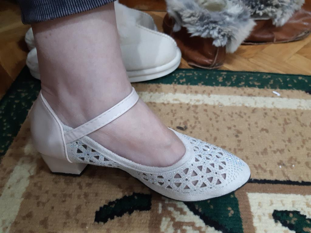 Pantofi comozi, drăguți, cu un toc mic stabil. Nu scump ca preț, dar bogat în aspect, respirabil și cu puțină strălucire pe nasul din față. Închizătorul este neobișnuit, dar îi puteți regla lungimea pentru a se potrivi piciorului dvs. Mulțumesc!