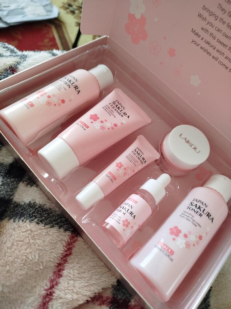 LAIKOU Ser pentru spălarea feței Sakura 6 buc/set Cutie cadou pentru îngrijirea pielii Cremă hidratantă pentru iluminarea tonului pielii Anti-îmbătrânire