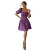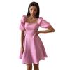Rochie scurtă elegantă de vară cu guler pătrat Femei cu mâneci scurte cu mâneci scurte Rochii de petrecere de culoare solidă 2023 Rochie de bal cu volan, linie A 26216