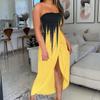 Temperament Moda Femei Sexy Imprimat fără bretele Rochie plisată Split Rochie de navetă
