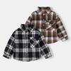 Jachetă elegantă de cămașă de flanel unisex pentru copii mici, mânecă lungă, guler răsturnat, șachetă în carouri cu nasturi, cu buzunar frontal și clasic,