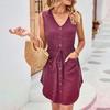 Rochie de vară pentru femei, cu decolteu în V, fără mâneci, elastică, de culoare uni, cu buzunare