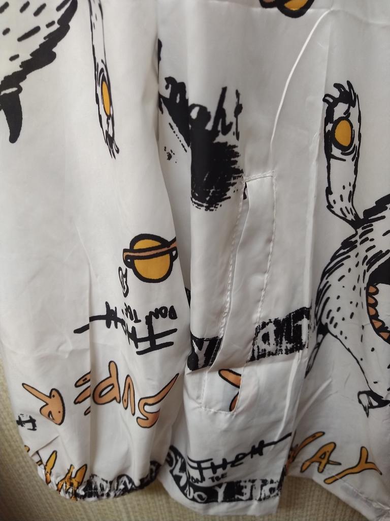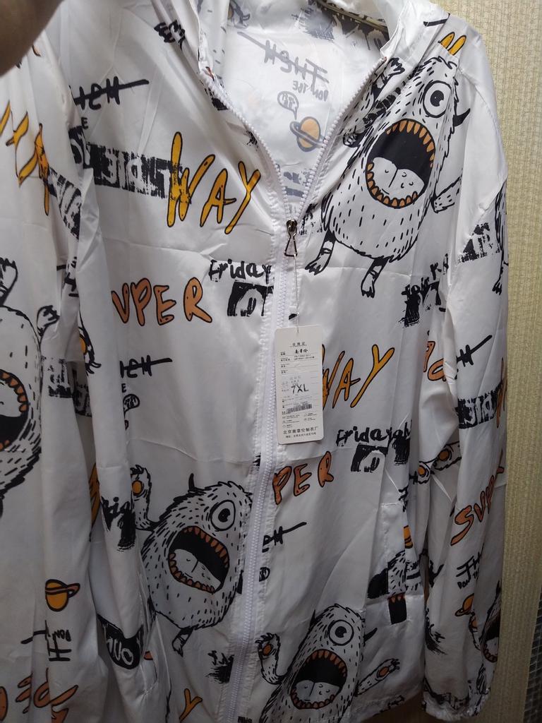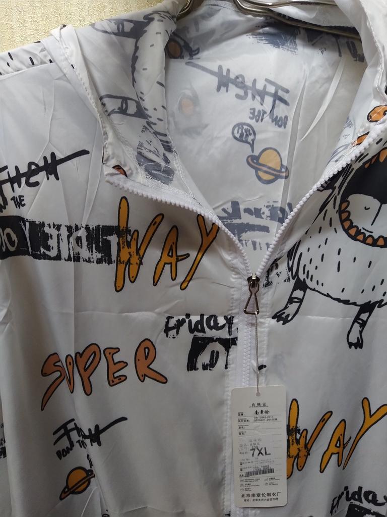 Marimea 7XL - pentru volum mare. Șolduri 140cm, lungime 77cm, mâneci 70cm, există buzunare. Cusut cu material de înaltă calitate din material subțire impermeabil. Arată bine pe figură. Vă recomand!