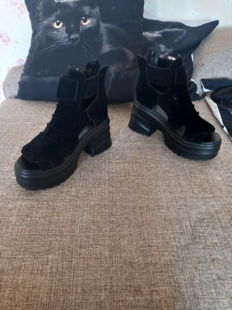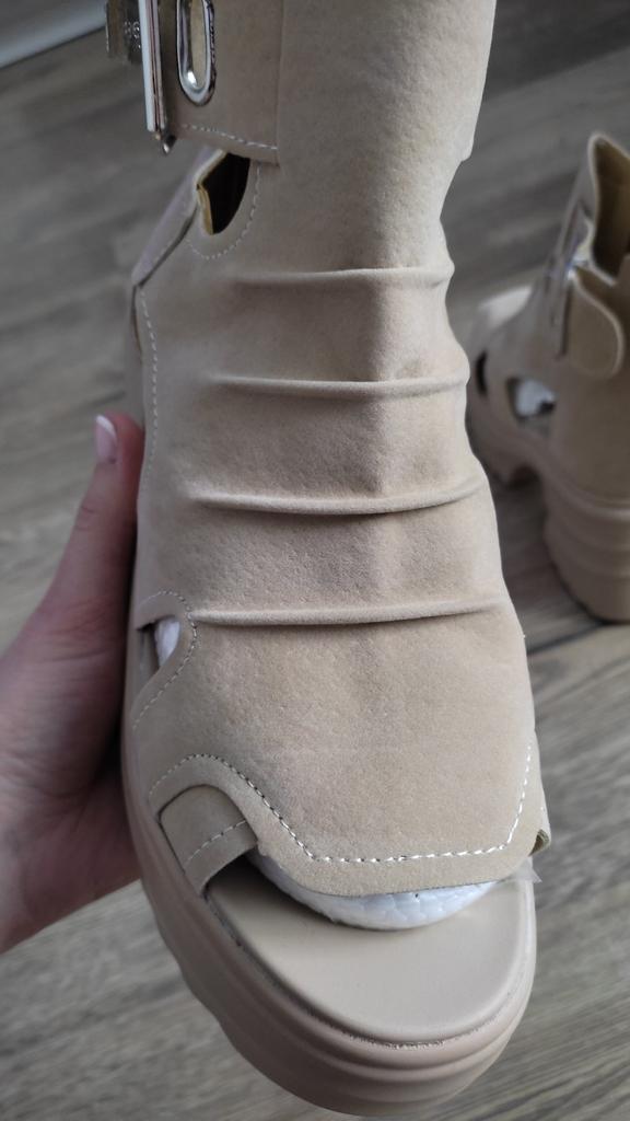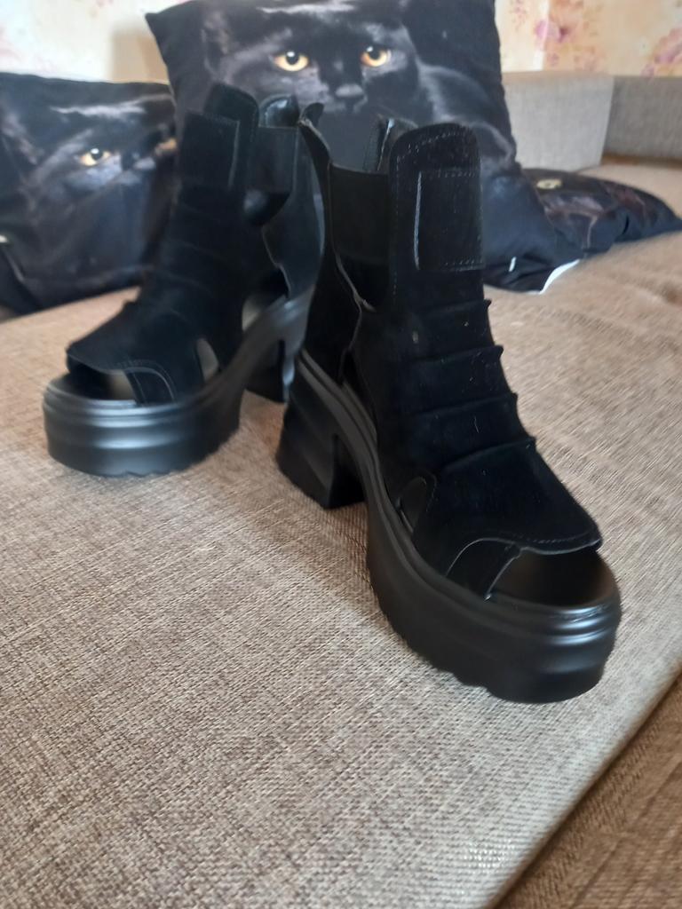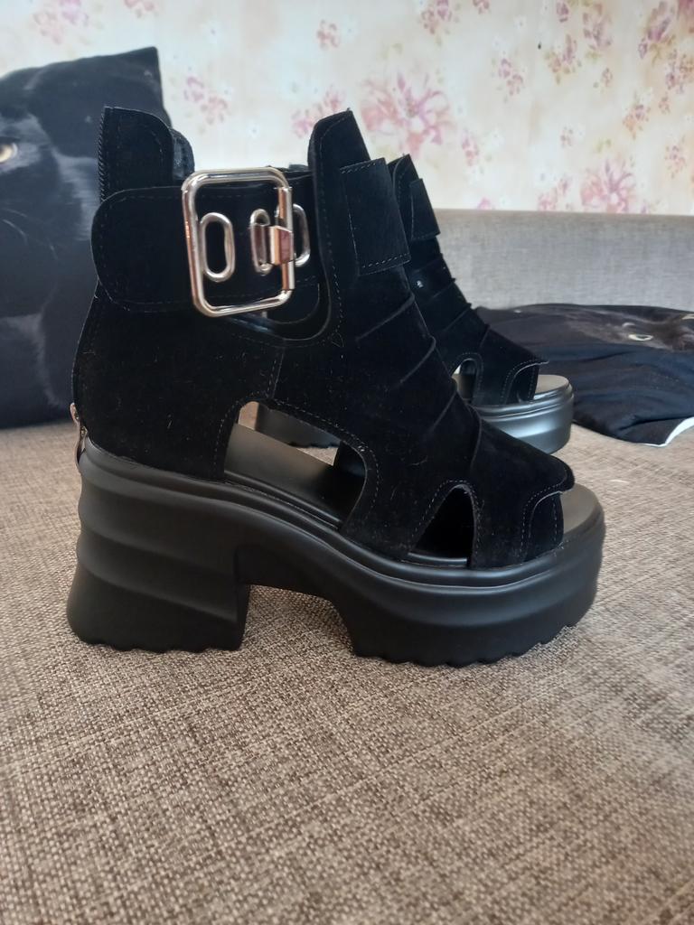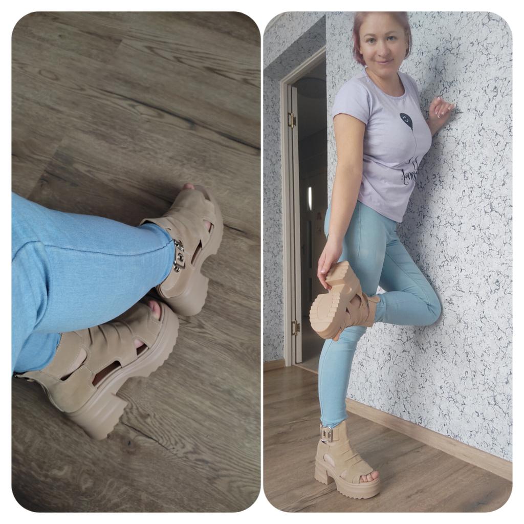 Sandale de dama cu platforma cu toc lat. Design frumos și elegant. Fabricat din piele intoarsa. Piciorul nu este frecat. Se va potrivi chiar și acelor fete care au un picior lat. Puteți regla lățimea piciorului. Am luat marimea 36 pentru marimea mea 36. Mi se potrivesc perfect. Se fixează cu un șarpe în spate. Vânzătorul are 3 opțiuni de culoare din care să aleagă. Sandale grozave de vară. mi-au placut.