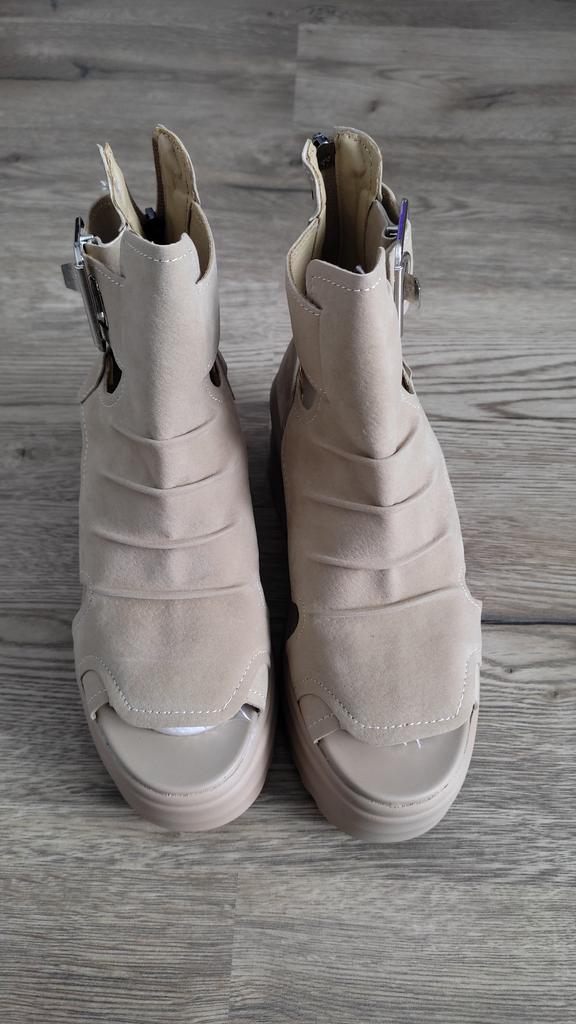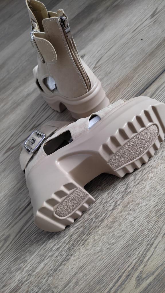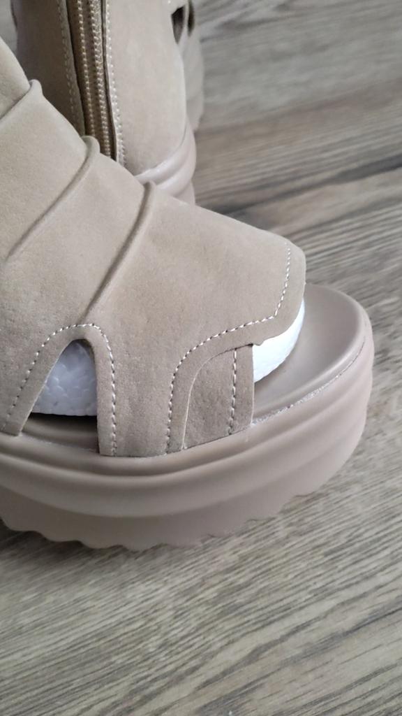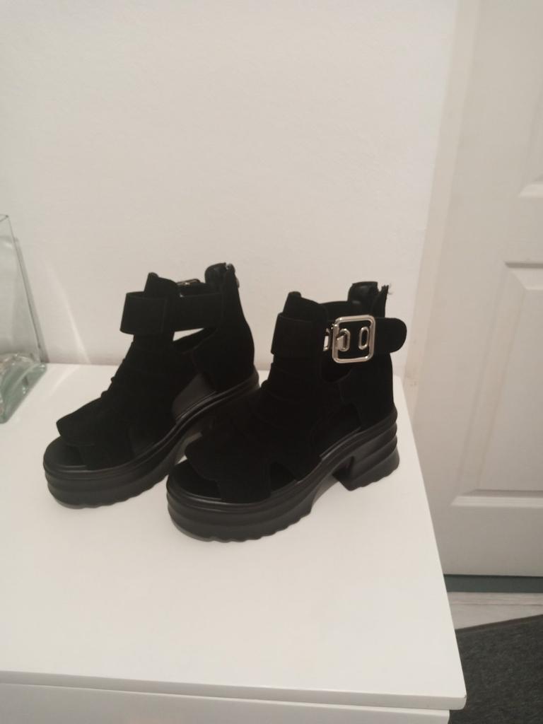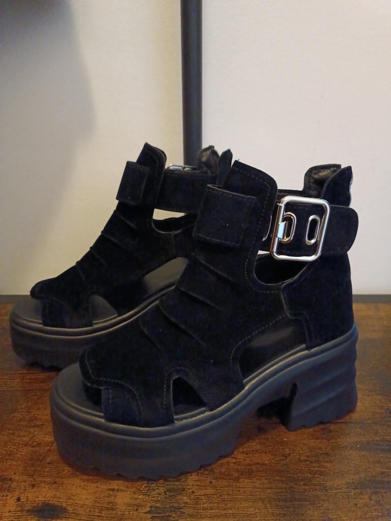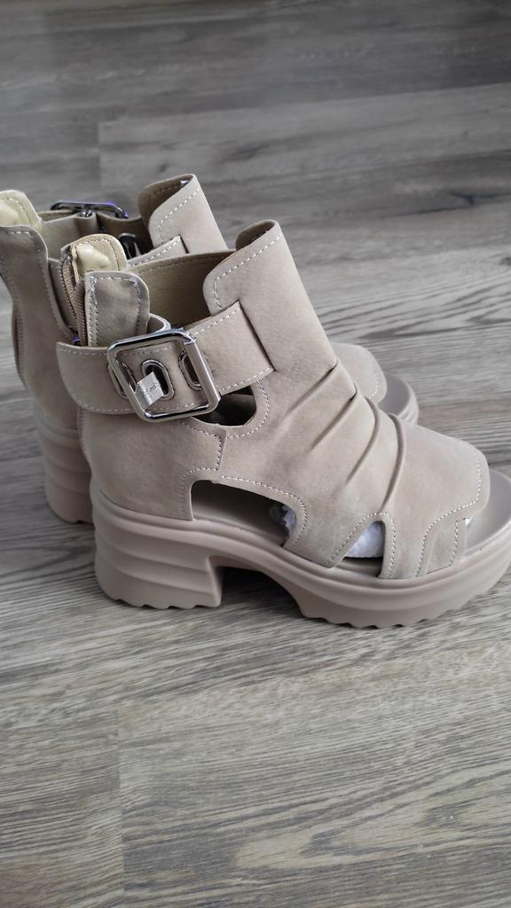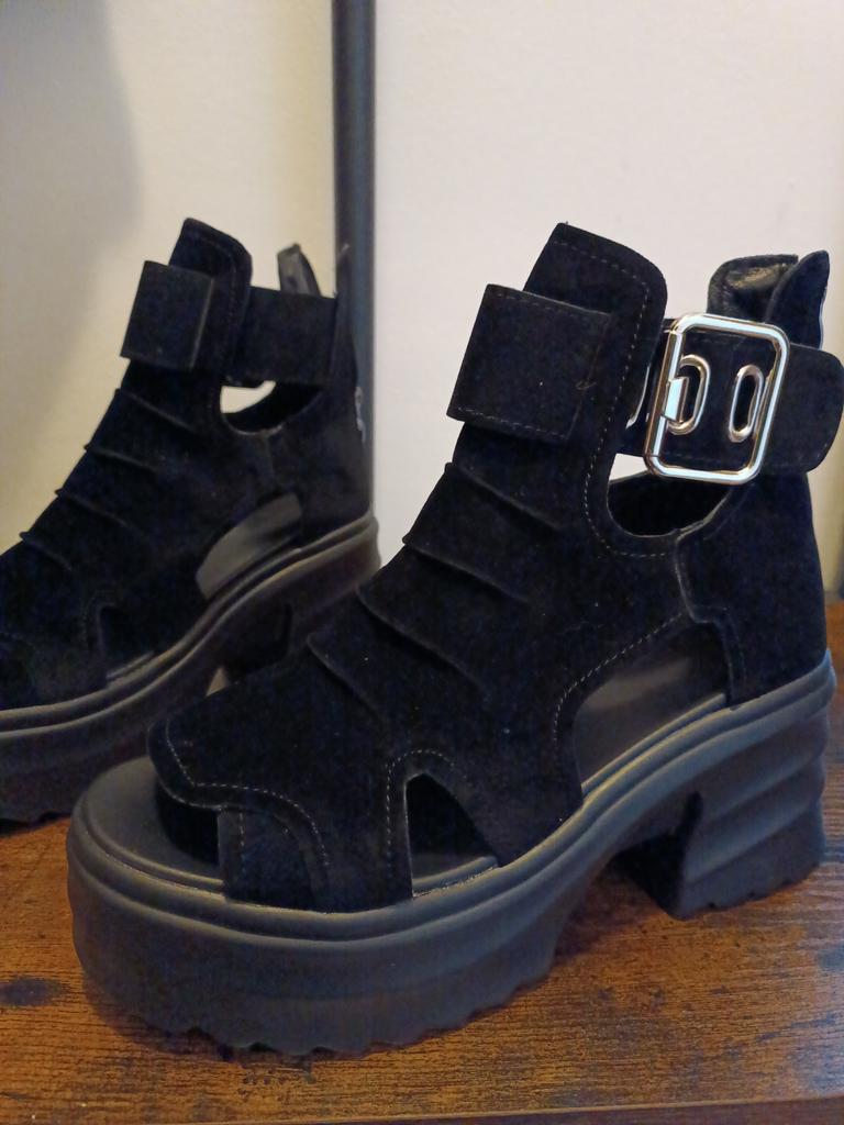 Sandale de dama cu platforma cu toc lat. Design frumos și elegant. Fabricat din piele intoarsa. Piciorul nu este frecat. Se va potrivi chiar și acelor fete care au un picior lat. Puteți regla lățimea piciorului. Am luat marimea 36 pentru marimea mea 36. Mi se potrivesc perfect. Se fixează cu un șarpe în spate. Vânzătorul are 3 opțiuni de culoare din care să aleagă. Sandale grozave de vară. mi-au placut.