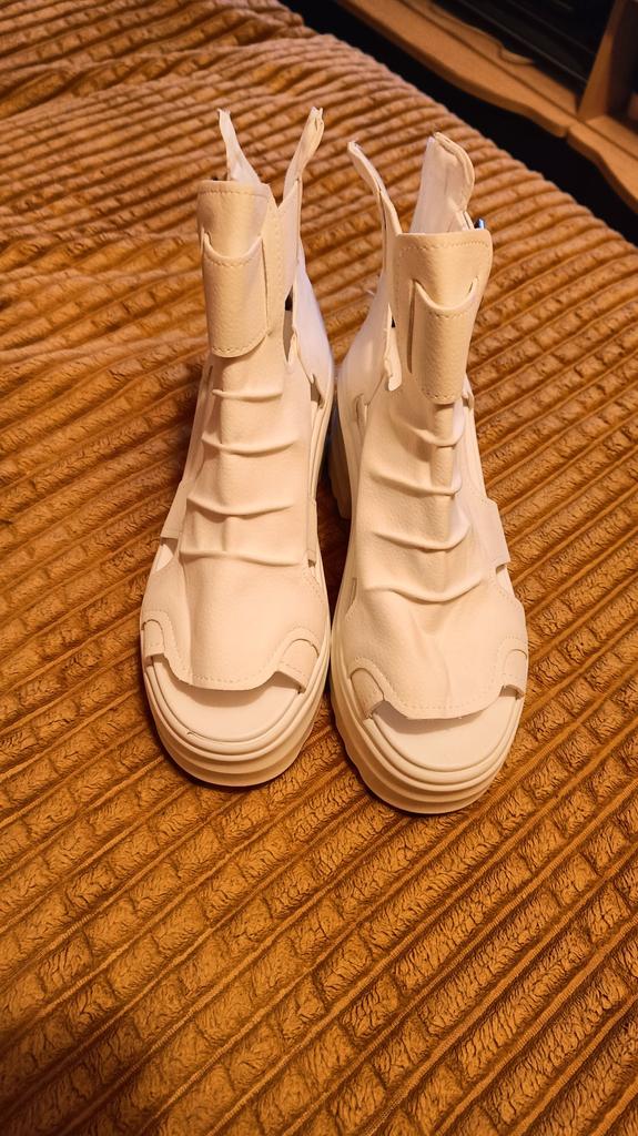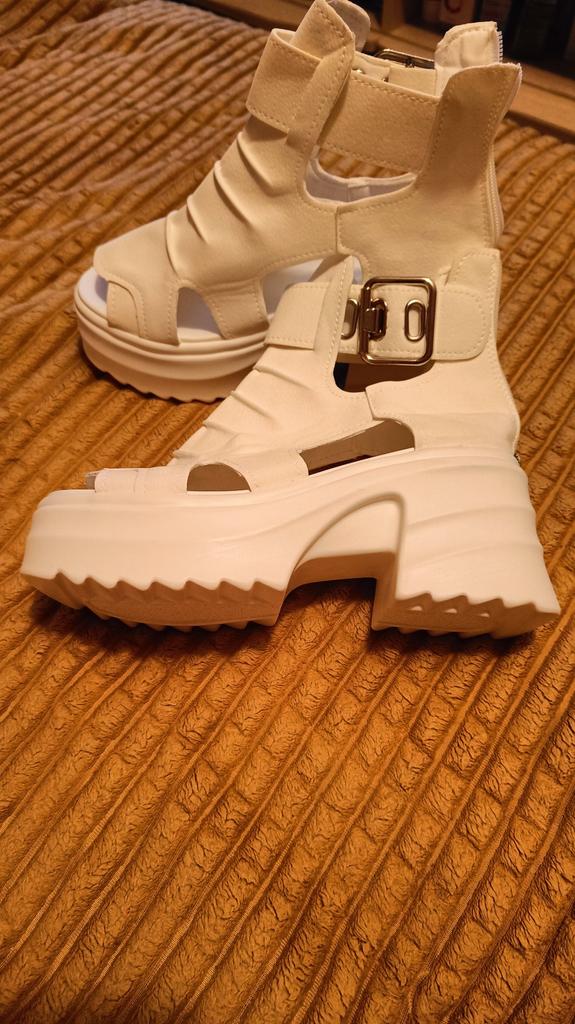* Podiș- Tocuri înalte* 💥𝗟𝗶𝗲𝗳𝗲𝗿𝘇𝗲𝗶𝘁 23 Acoperișuri 💥𝗟𝗶𝗲𝗳𝗲𝗿𝘂𝗺𝗳𝗮𝗻𝗴 Livrarea include 1 pereche de pantofi în culoarea și mărimea corespunzătoare. Sunt disponibile in 3 culori diferite (bej, alb si negru) in marimile 35-39. Am comandat pantofii in marimea 39 in alb. În mod normal sunt o mărime de pantofi 40... Așa că pot spune că sunt fidele mărimii... 💥𝗤𝘂𝗮𝗹𝗶𝘁ä𝘁 Din păcate, sunt dezamăgit de calitate, cusăturile și talpa nu sunt bine lipite. Există reziduuri de adeziv pe partea din față a tălpii și pielea artificială nu se simte suficient de înaltă, așa că probabil că pantoful nu va rezista mult. Talpa se simte ca plastic ieftin și scoate zgomote ciudate când mergi. Cu toate acestea, îmi place designul pantofilor. Ei sunt un ochi frumos. Este practic că nu trebuie să deschizi pantofii folosind catarama, dar te poți strecura rapid în pantofi de la spate deschizând un fermoar. Pantofii nu sunt deloc atat de grei pe cat era de asteptat... in ciuda talpii cu platforma.. Pentru compoziția materialului : Necunoscut, dar să nu credeți că este piele reală 💥𝗙𝗮𝘇𝗶𝘁 Pantofi cu platformă foarte drăguți, dar am fost puțin dezamăgit de calitate. Sunt fidele mărimii, așa că puteți comanda mărimea originală. 👌